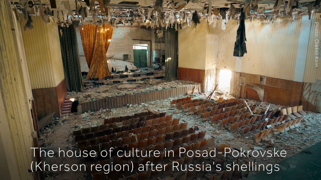 · 1,711 objects of cultural infrastructure have been damaged or destroyed due to Russian aggression in Ukraine, according to the Ministry of Culture and Information Policy. Among them are 844 houses of culture, 603 libraries, 133 art education institutions, 100 museums and galleries, 31 theaters, cinemas and philharmonics.